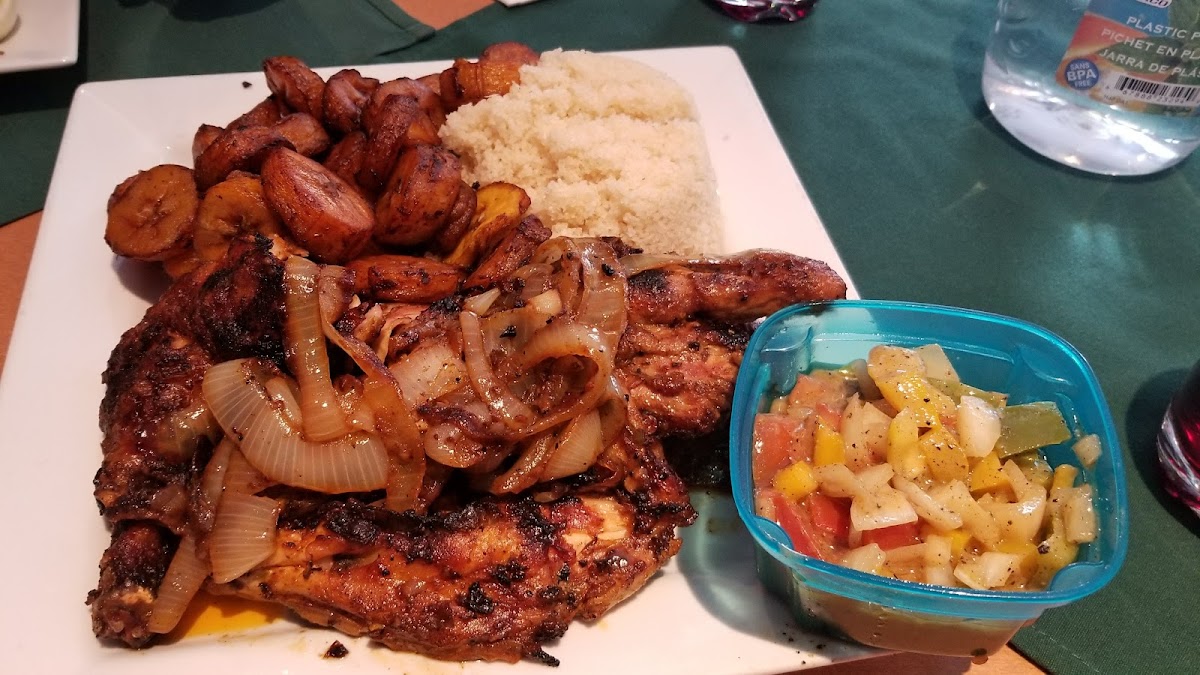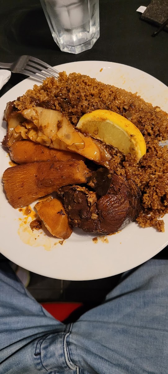 Menu highlights center on traditional Senegalese and West African dishes featuring house-marinated grilled meats like Dibi Chicken and Dibi Lamb, served with familiar sides like white rice, plantains, or athieke, a cassava-based accompaniment. Signature dishes such as Mafé, a peanut stew, Yassa, and the national staple Thiebou Dieun (fish with seasoned rice) bring an authentic taste of the region. Portions tend to be generous, making it a good spot for a hearty, flavorful meal.