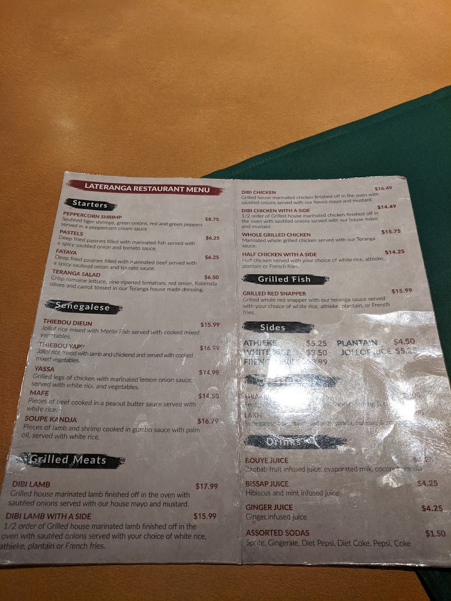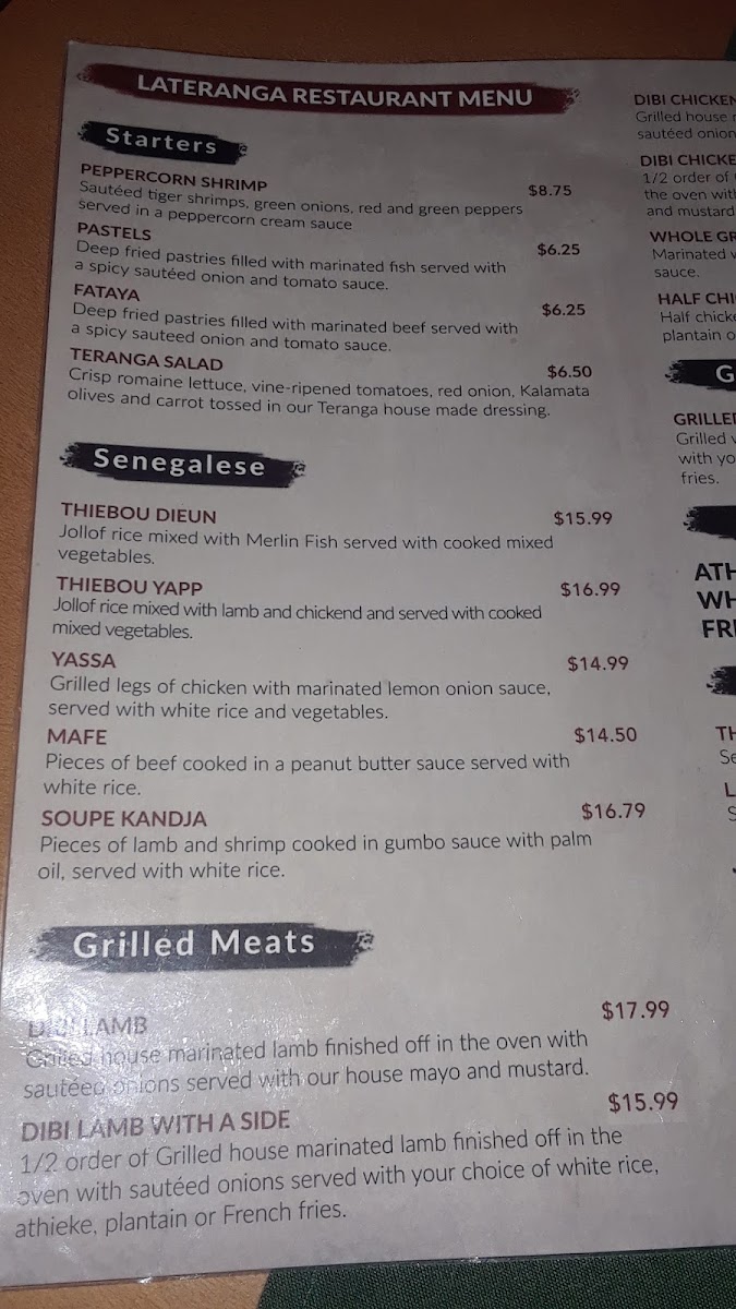 Restaurant la teranga Menu